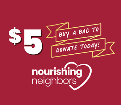 $5 bags are available for purchase to donate in-store at the check stand or with your online order. Donations go to local food banks, visit your local Pavilions to see participating organizations.