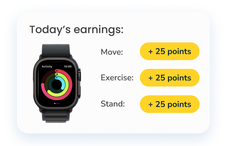 3. Earn up to 75 points each day for closing your Move, Exercise, and Stand rings on your Apple Watch.